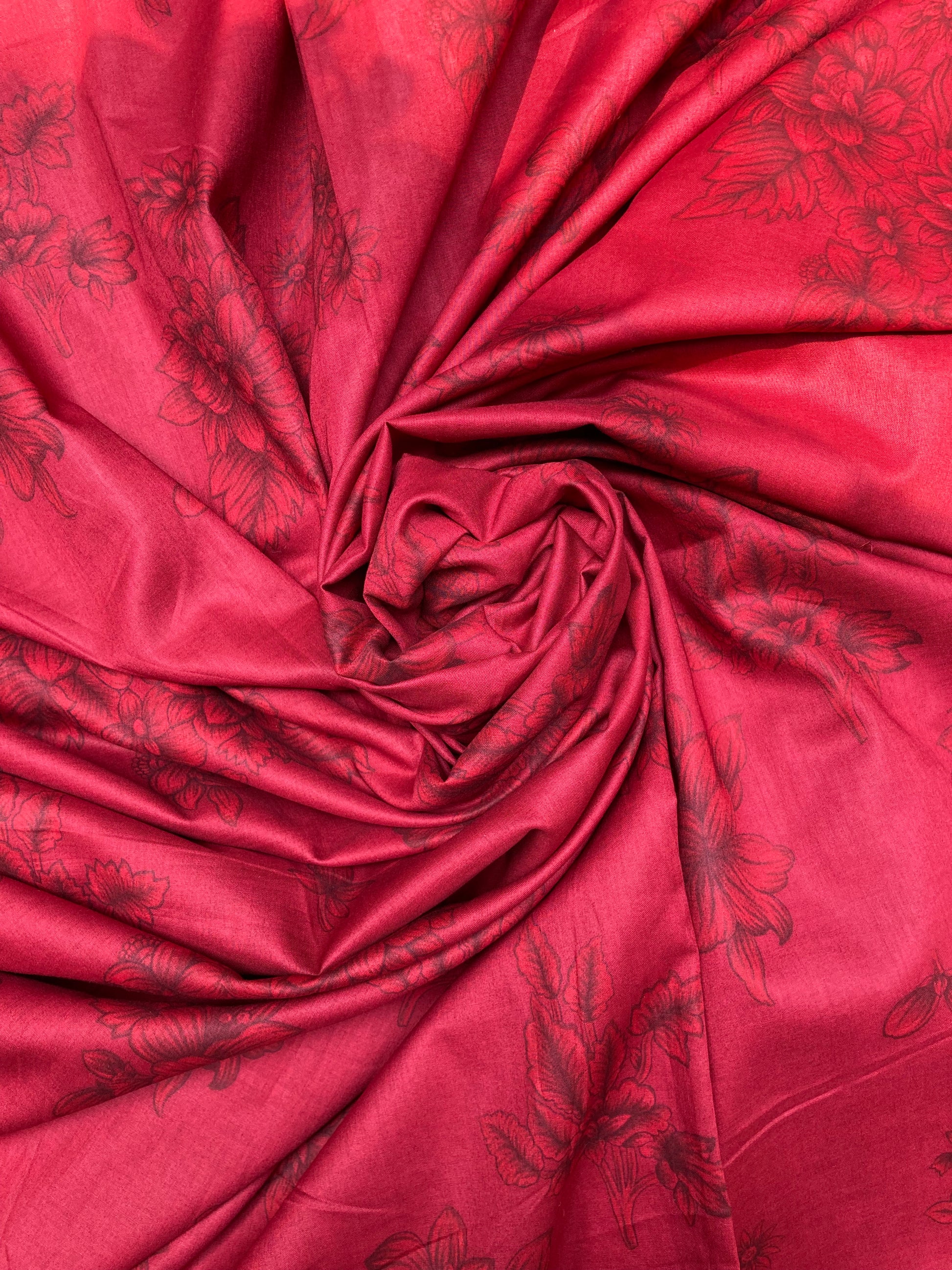 🌸 Design: Subtle tonal floral patterns in darker red, giving a rich textured effect with understated elegance.